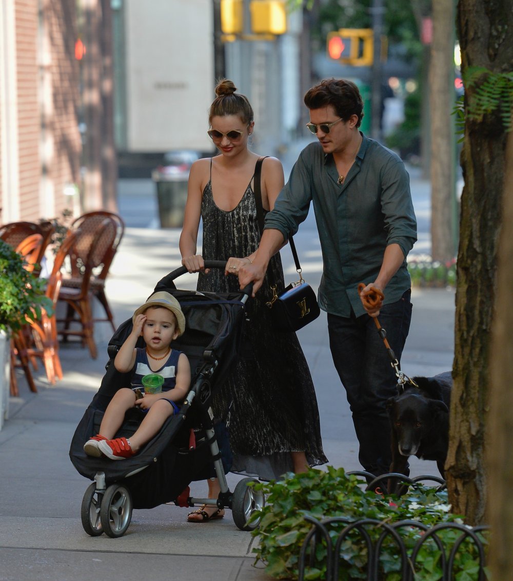 U šetnju su poveli i svog kućnog ljubimca, psa Sidija, a svi skupa izgledali su neodoljivo ljupko: Orlando muževan u tamnoj košulji, Miranda ležerna i privlačna u maksi haljini i slatki Flynn s trendi crvenim tenisicama.