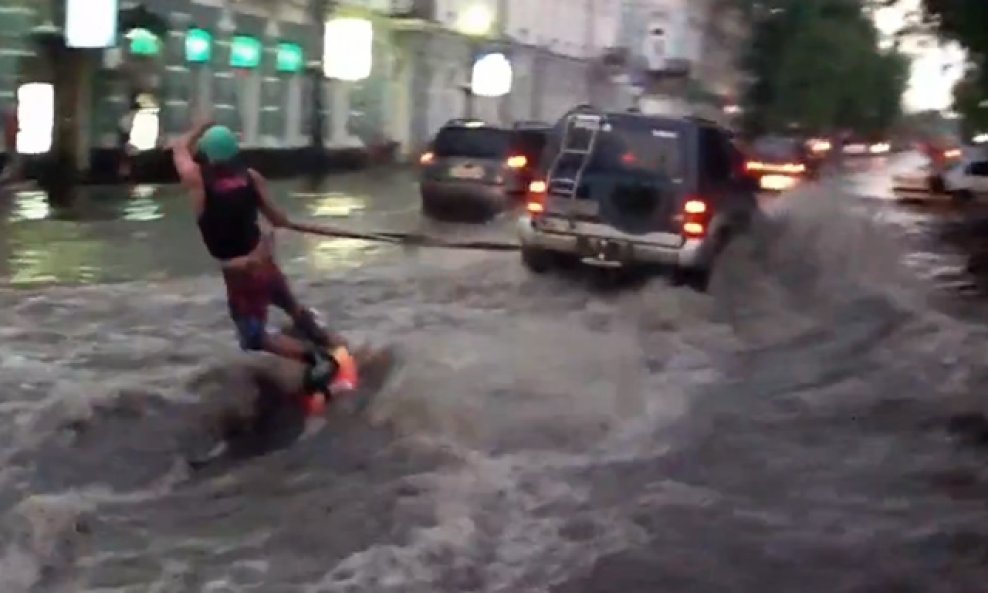 Naš protagonist tako je iskoristio priliku za surfanje ulicama Irkutska na sveopće odobravanje prolaznika.