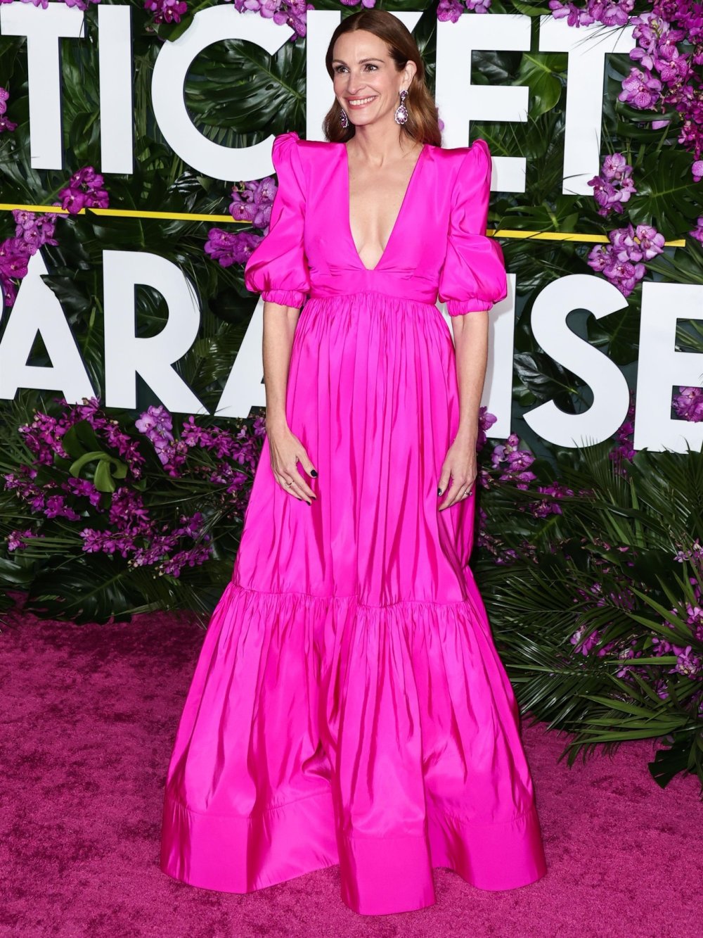 Haljinu upečatljive ružičaste boje Roberts je već nosila, prije tri godine na premijeri romantične komedije ‘Ticket to Paradise’, no ovoga puta odlučila se za kraću verziju, čime je unijela dozu ležernosti i mladenačkog šarma. Kraći porub dodatno je naglasio voluminoznu suknju te omogućio da haljina u novoj silueti dodatno istakne Julijinu figuru i modni izričaj.