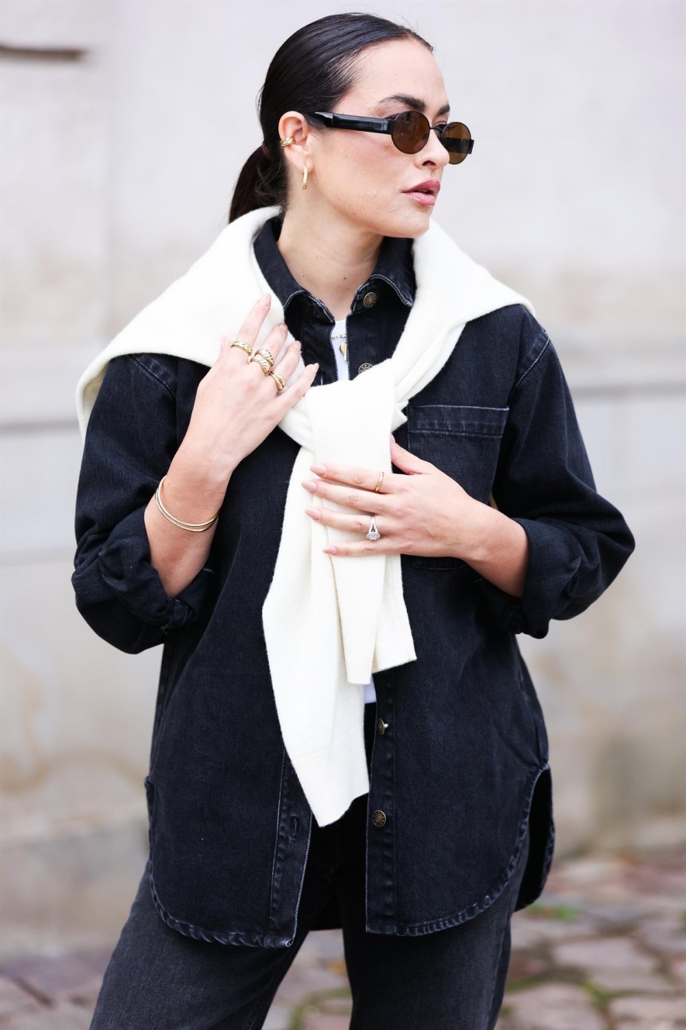 Džemper/šal možete nositi uz bilo koji kaput, pa čak i preko dugog kaputa ili balonera, za chic efekt s dozom pariškog šarma. Jednako dobro funkcionira i uz pufastu jaknu, kao elegantan kontrast.
