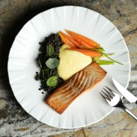 U glavnim jelima naglasak je na balansu elegancije i punine okusa – file lososa dolazi uz crnu leću, mini mrkvu i nježni hollandaise umak, dok file brancina prati krema od celera, zeleni umak od začinskog bilja te proljetna kombinacija graška, boba i tikvica. Posebno se ističe i janjeći but sporo kuhan u crvenom vinu te poslužen uz sotirane mahune, pjenu od gljiva, mladi krumpir i poriluk iz ugljena, koji jelu daje dodatnu dubinu.
