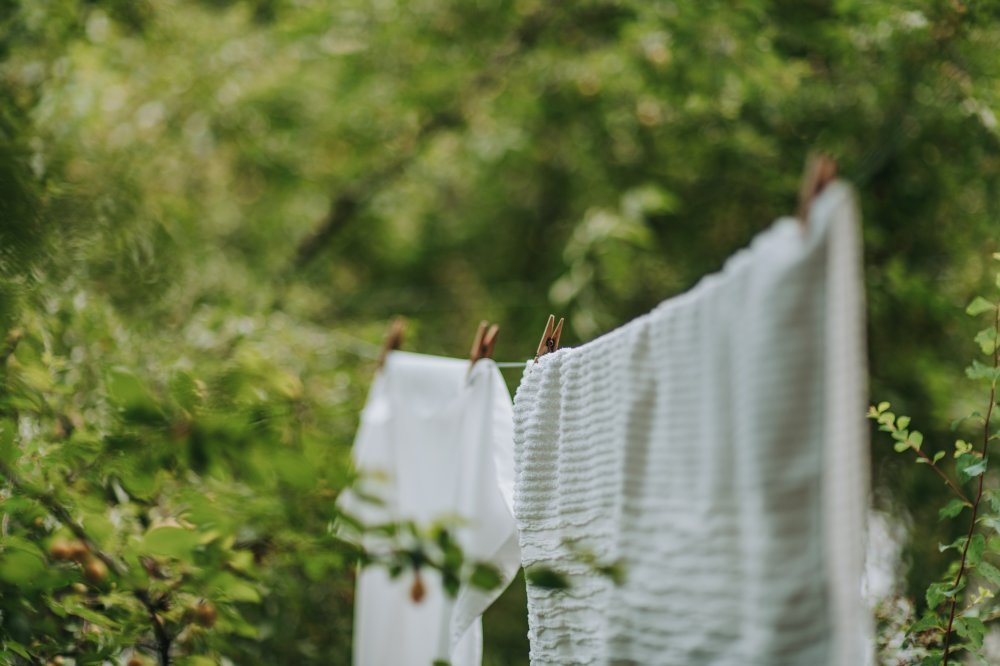Način vješanja također utječe na završni dojam. Važno je da uže ili stalak ne budu pretrpani kako bi zrak mogao kružiti između plahti. Ako ih prebacujete preko užeta umjesto da koristite štipaljke, potpuno ih raširite, bez preklapanja rubova, jer slojevi tkanine jedan preko drugog usporavaju sušenje i mogu dovesti do krutosti.