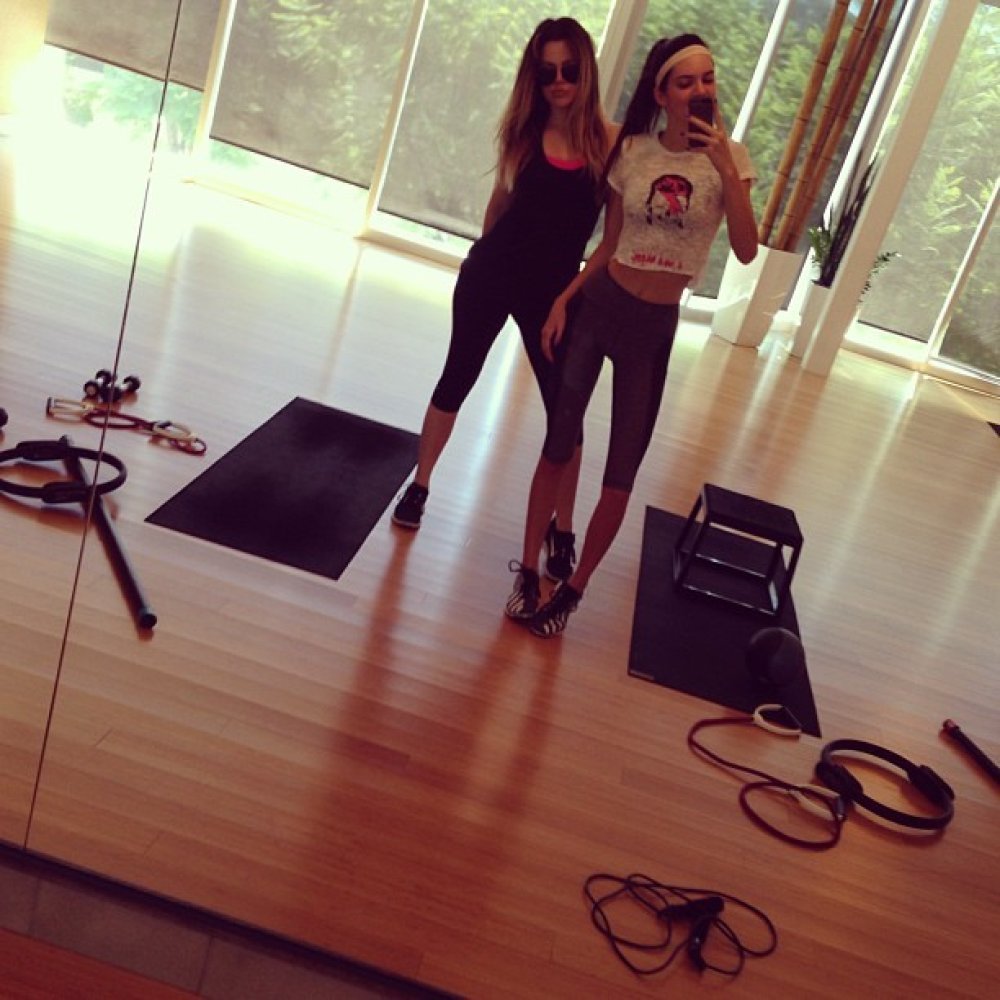 Stojeći u teretanu pokraj svoje manekenski vitke 17-godišnje sestre Kendall, Khloe je odjevena u uske tajice i topić pokazala nevjerojatno vitku figuru. Fotografije je na Instagramu objavila Kendall te ispod fotki napisala da njih dvije vježbaju kako bi izgledale sjajno. Osim fotke na kojoj poziraju, Kendall je objavila i fotku na kojoj se vidi kako Khloe diže poprilično težak uteg.