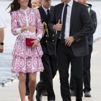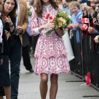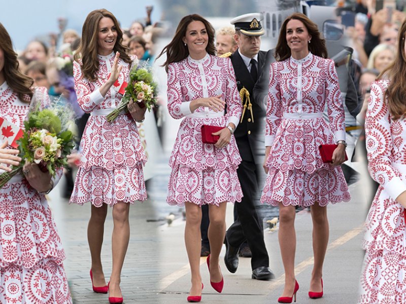 Bijela haljina s crvenim printom dio je kolekcije Resort za 2017. modne kuće Alexander McQueen, a Kate ju je izbrala jer se podudara s bojama kanadske zastave. Vojvotkinja od Cambridgea takvim detaljima uvijek pokušava odati malu počast zemlji koju službeno posjećuje pa niti ovaj put nije napravila iznimku.