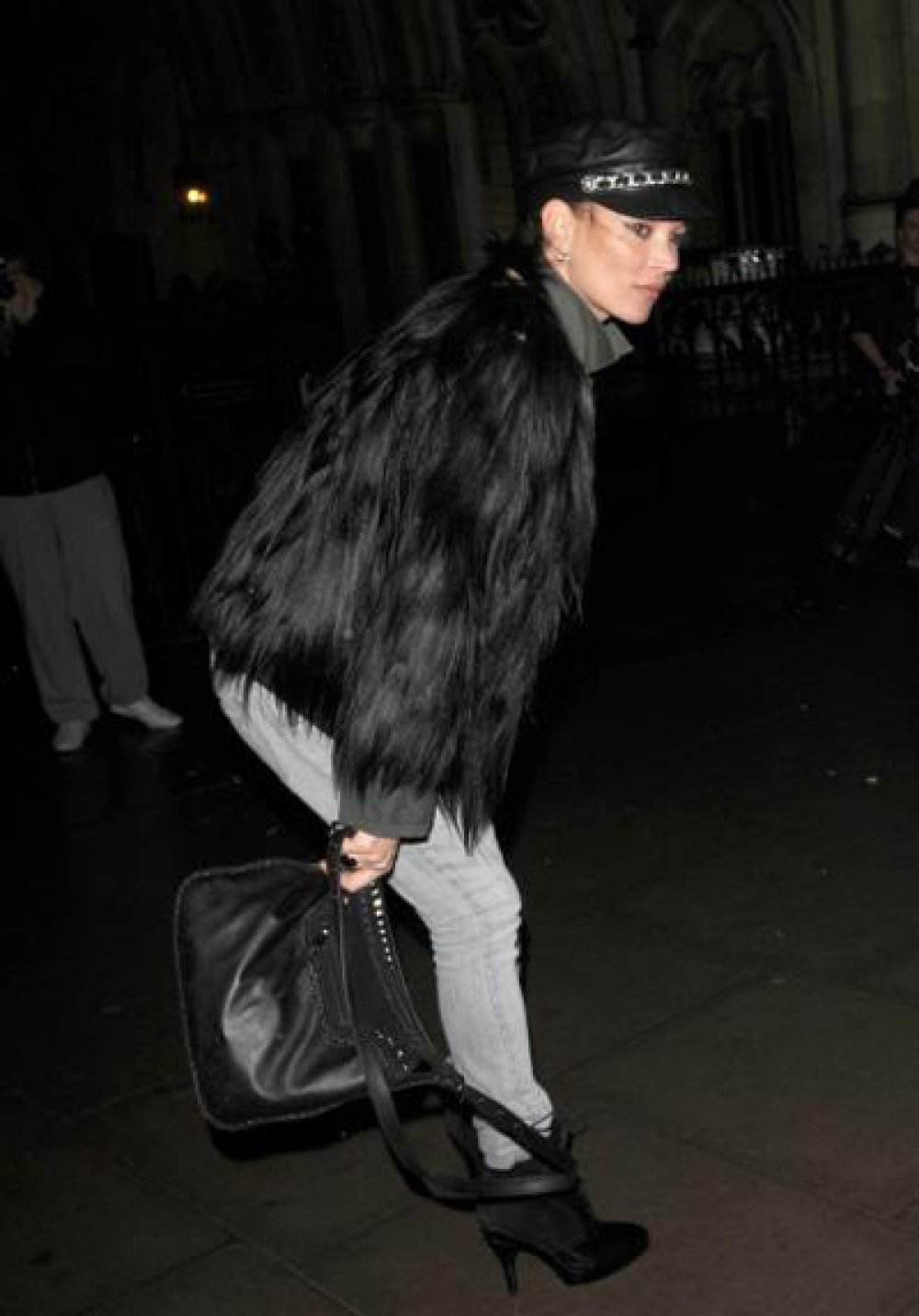 Kate Moss teturala je, s flekom od pića koje je prolila po trapericama, kući nakon revije Vivien Westwood na Tjednu mode u Londonu, i to ruku pod ruku s fotografom i prijateljem Marijem Testinom
