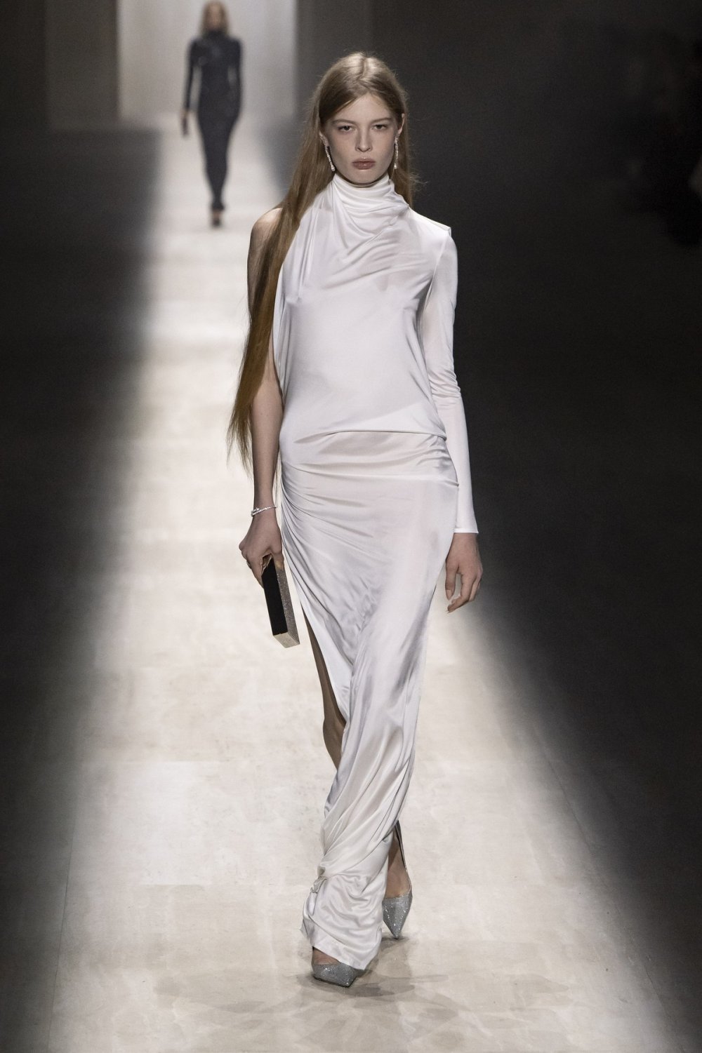 Vivian je na pisti nosila dugu bijelu haljinu s drapiranim detaljima i dubokim prorezom, koju je Guccijev kreativni direktor Demna oblikovao u duhu povratka glamuroznoj estetici devedesetih. Look je upotpunila sjajnim salonkama s kristalima, dugim naušnicama i metalik torbicom – kombinacijom koja spaja luksuz i slobodu izraza.