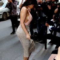 Za večeru je odjenula svileni top boje breskve, ali bez grudnjaka. Provokativni prozor uznemirio je sve prisutne, pa fotografi nisu propustili priliku 'uloviti' Kim sa svih strana. Ponovo je došla na naslovnice zahvaljujući fotografijama na kojima se naziru njene bujne grudi.