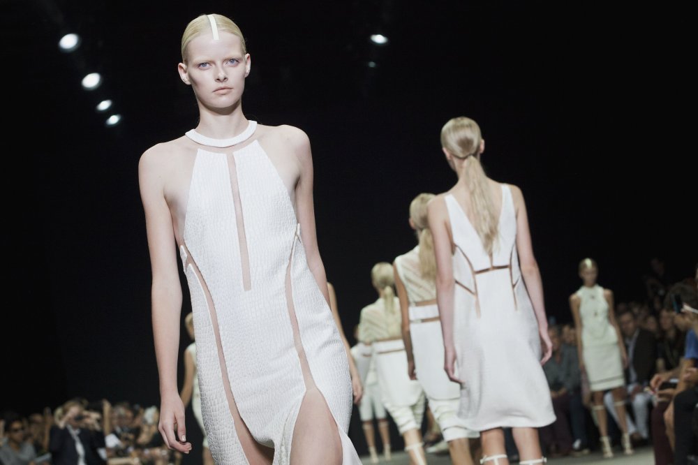 Alexander Wang dobio je najjači pljesak na reviji u nedjelju i to na kraju, kada je nekoliko modela izašlo na piste u haljinama koje su zasjale u mraku. Wang se poigrao oblicima i izrezima. Geometrijske oblike i komade od kože vezao je prozirnim dijelovima i stvorio nevjerojatne komade odjeće koji su na kraju izazvali oduševljenje publike. Zahvaljujući izrezanim pravilnim oblicima koji su lelujali na tijelima modela, stvorio je dojam da haljine još treba dovršiti i spojiti te je zasluženo opravdao povjerenje svojih poklonika.