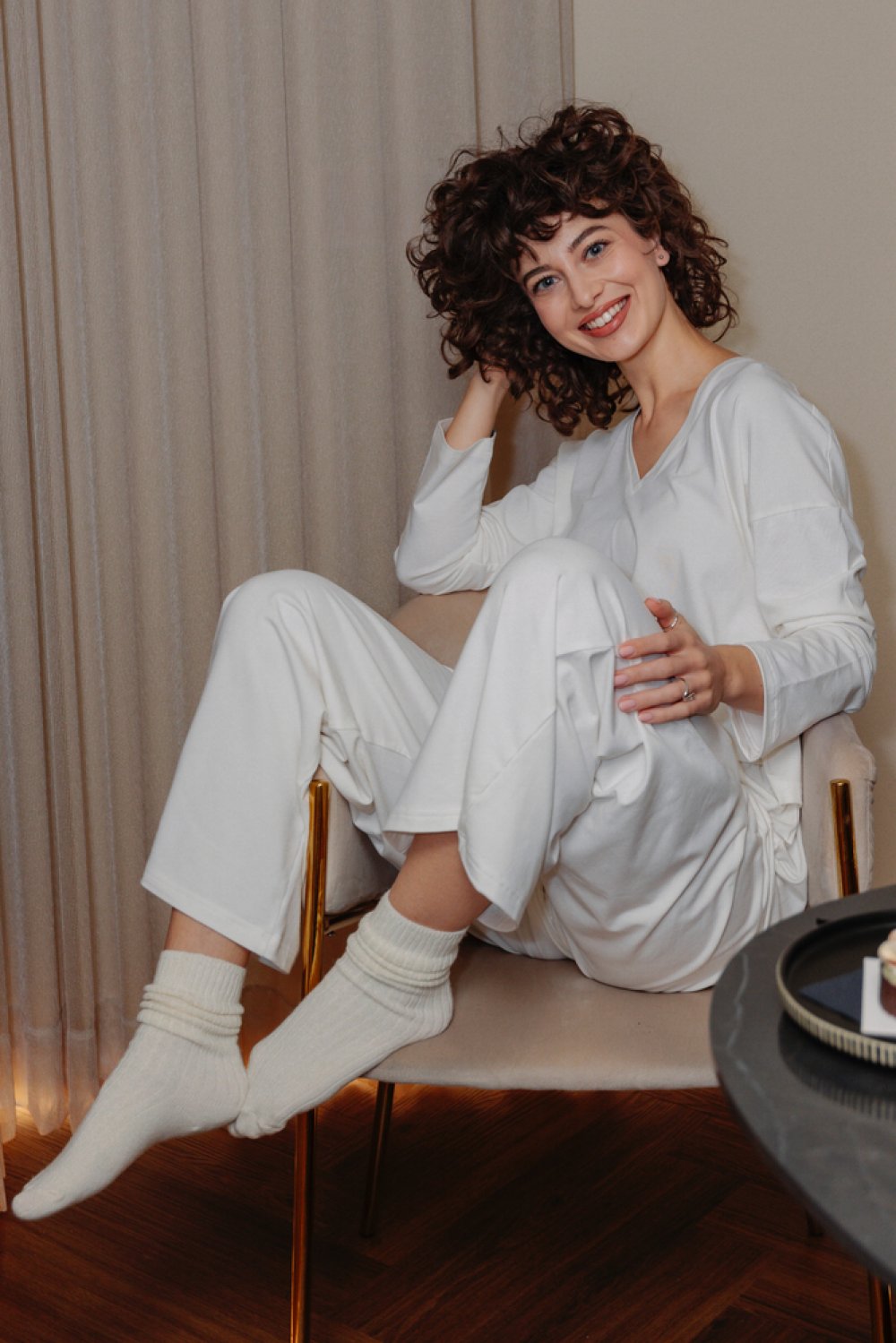 Delminium je bijeli lounge set inspiriran mirom i povlačenjem unutra. Mekan komplet koji prati pokret bez ograničenja i nosi ton jutarnje svjetlosti, bijelog papira i svježe posteljine. Idealan je za dane kad vani sniježi, a izabrali bi toplinu. Jednako prirodan kod kuće i na ulici, kad udobnost postane osobni stil. Delminium nije samo komplet, to je stanje uma i način postojanja u zimi.