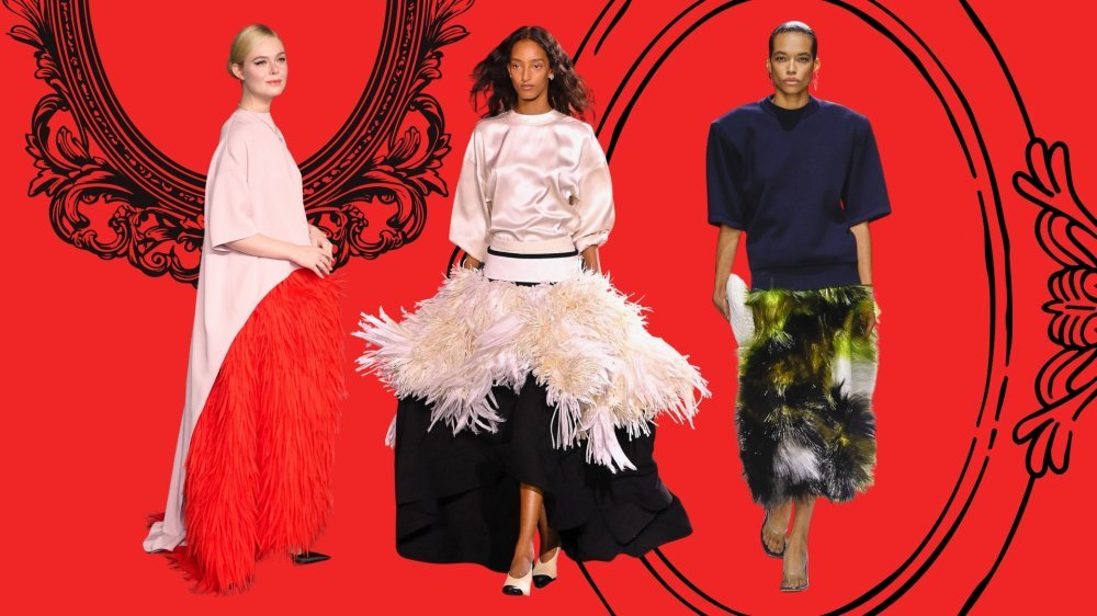 Suknje u debitantskoj kolekciji dizajnera Pierpaola Picciolija za Balenciagu također su pune, duge i u svijetlim nijansama te prekrivene perjem ili u obliku balona. Gornji pak dio, u svojoj jednostavnosti, igra se oblicima: rub je konkavan ili značajno skraćen i hrabar.
