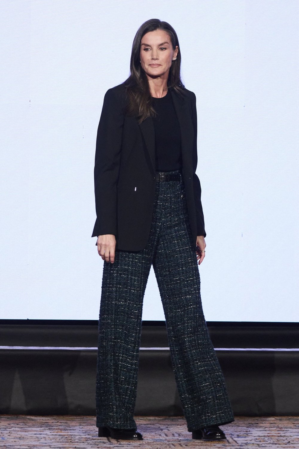 Kao i prije dvije godine, danas je ponovno odabrala tanki pojas uz svoje hlače od tvida i mokasine. Što se tiče nakita, nosila je svoj prsten Coreterno, koji je prvi put pokazala 6. siječnja 2023., te naušnice u obliku dvostrukog bodeža (€3.300) od bijelog zlata i dijamanata, iz kolekcije inspirirane Marakešom brenda Gold & Roses. Prvi put ih je nosila 26. lipnja 2017., i od tada ih je nosila nebrojeno puta, čineći ih jednima od njezinih omiljenih. Osim toga, 24. listopada 2024. posudila ih je princezi Leonor kada je primila titulu počasne gradonačelnice Ovieda.
