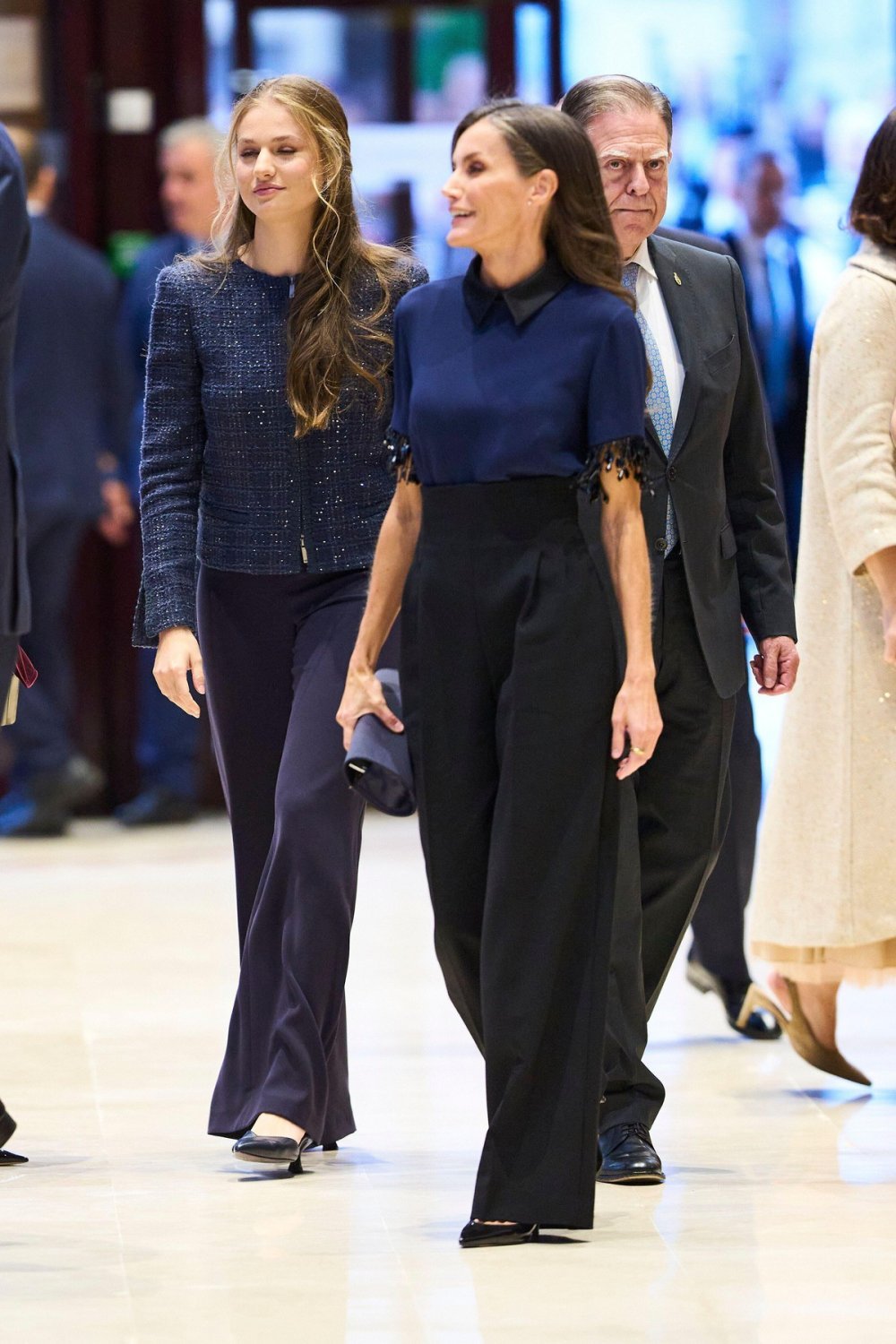 Letizia se ovoga puta odlučila za minimalizam u nakitu, dopuštajući da glavnu ulogu ima sam odjevni komad. Time zadržava dozu suzdržane elegancije koja priliči prvoj dami i majci princeze Leonor, glavne zvijezde ove svečanosti.
