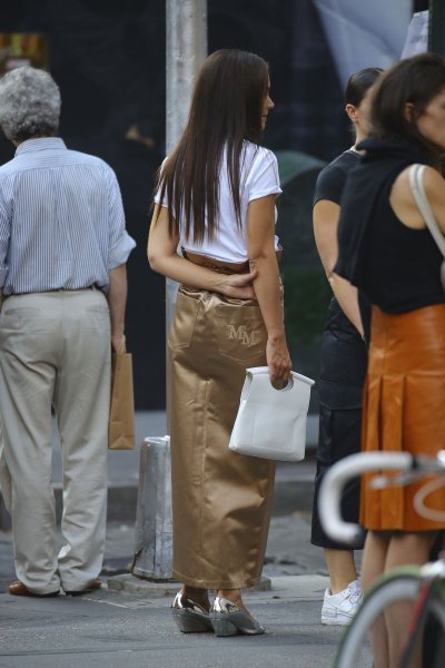 Cipele s punom petom, popularna wedgice, ove sezone nedvojbeno su se vratile modnu scenu, a taj trend prigrlile su brojne zvijezde, od Amal Clooney, Lily-Rose Depp i Florence Pugh. Zvijezda street style mode, Katie Holmes sada je pokazala moderniju verziju klasične cipele s punom petom i to u hit, srebrnoj boji. Katie je za otvaranje novog Max Mara pop-up butika, odabrala je Marni srebrne cipele špic vrha te sparila sa satenskom brončanom Max Mara suknjom. Mješavina metalik boja, zajedno s jednostavnom bijelom majicom, učinila je izgled svježim, a glumica je za kraj dodala minimalističku Proenza Schoulera bijelu torbu.