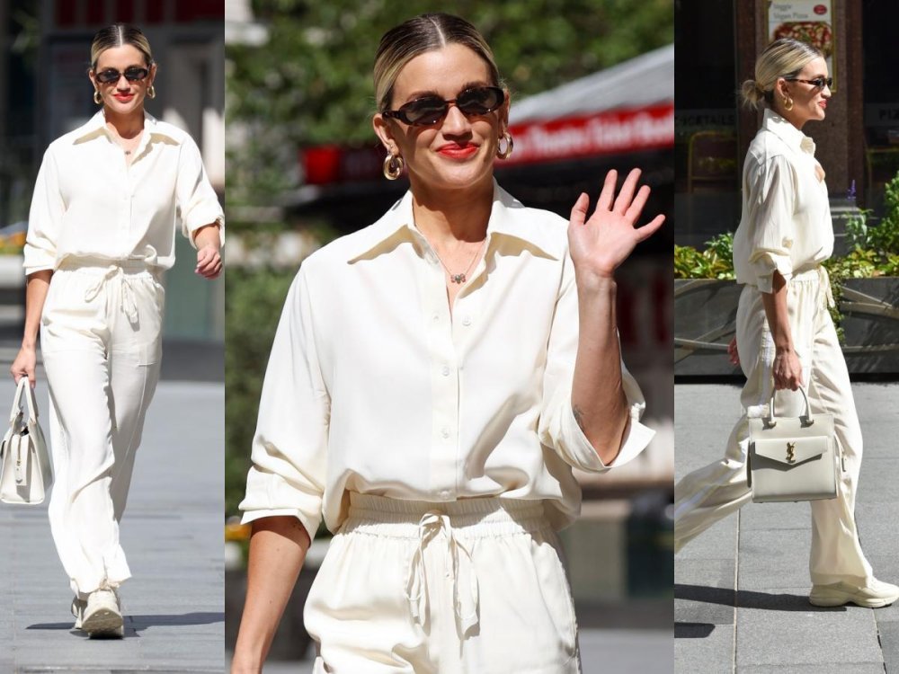Uvijek dobro raspoložena Ashley je ponovno izgledala bez greške u udobnoj kombinaciji košulje i širih hlača u istoj nijansi nježne boje vanilije.