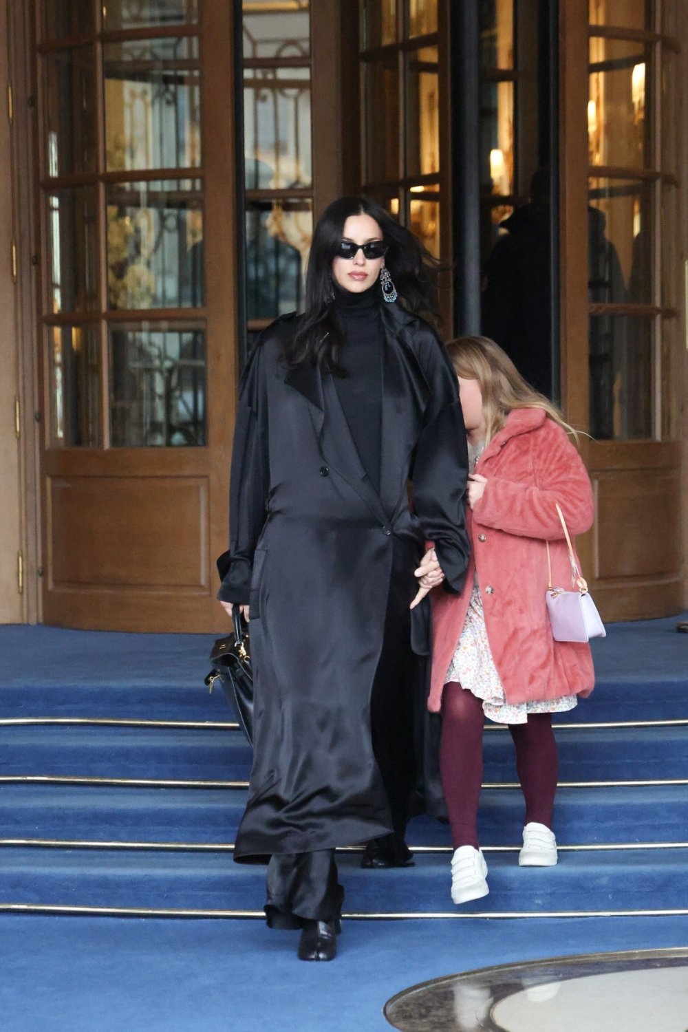 Irinin pariški look oslanja se na formulu koja najbolje odgovara tihom luksuzu: puno crne, čiste linije i luksuzni materijali bez vidljivih logotipa. U Parizu je viđena u monokromatskom izdanju u upečatljivom kaputu od svilenkaste tkanine, lepršavim hlačama i kožnim čizmama Maison Margiela Tabi, dokazujući opet da njezin street style uvijek krade pažnju.