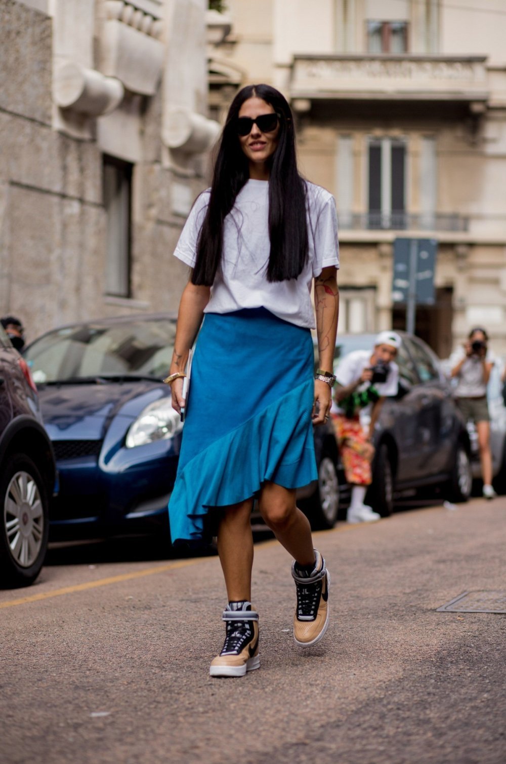 Slojevito odijevanje kakvo proljeće traži gotovo je nezamislivo bez tenisica. Klasični baloner djeluje uglađeno, a jednostavne tenisice cijeli outfit čine nosivim i praktičnim za promjenjivo vrijeme.
