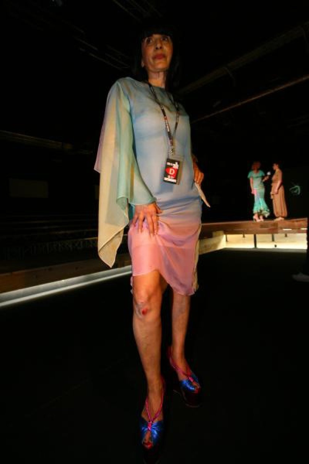 Kako je pala, zbog grubih dasaka od kojih je bila sastavljena modna pista dobrano je ozlijedila koljeno.