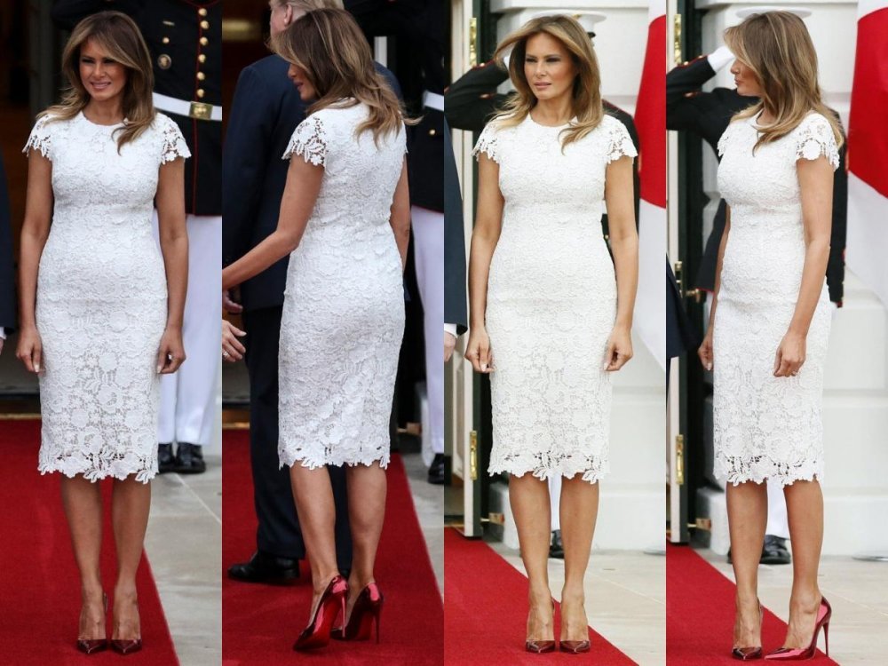 Uvažene goste iz Japana u Bijeloj kući, prva dama Amerike Melania Trump dočekala je u formalnom izdanju kojim je dominirao laskavi model bijele haljine od čipke.