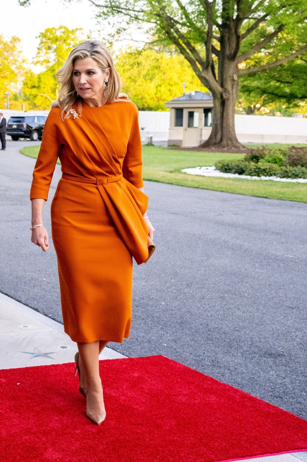Na večeri u Bijeloj kući kraljica Máxima pokazala je kako se to radi bez puno filozofije. Dok je Melania Trump igrala na kontrast crno-bijelog uzorka, nizozemska kraljica odabrala je moćnu narančastu haljinu koja kombinira minimalizam i efekt i pritom rješava jedan od najčešćih stilskih problema.