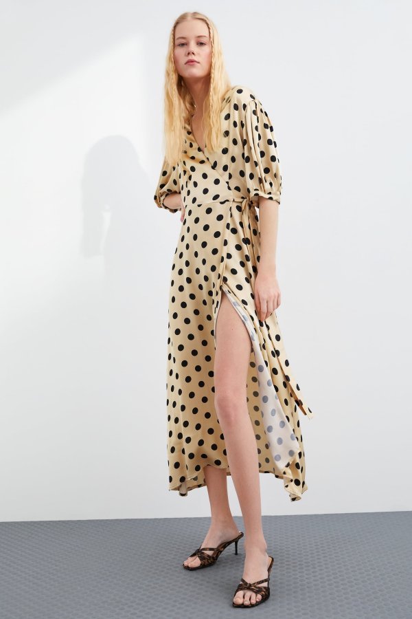 Otkako je španjolski high street brend Zara lansirao u prodaju ovu neodoljivu točkastu haljinu midi kroja, ne prestaje se pojavljivati na Instagramu. Sve vodeće trendseterice u svoj su ormar već pospremile ovu satensku haljinu na preklop koja laska svakoj figuri.