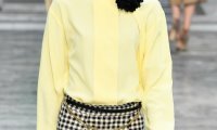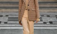 Tkaninu u boji burgundca koja je činila ovratnik i rukave, 74- godišnja glumica uspjela je dodatno istaknuti dodatkom pismo torbice identične nijanse, a cjelokupno izdanje za praćenje revije kompletirala je klasičnim parom visokih, crnih gležnjača uz detalj naušnica ringova s dodatkom bisera.