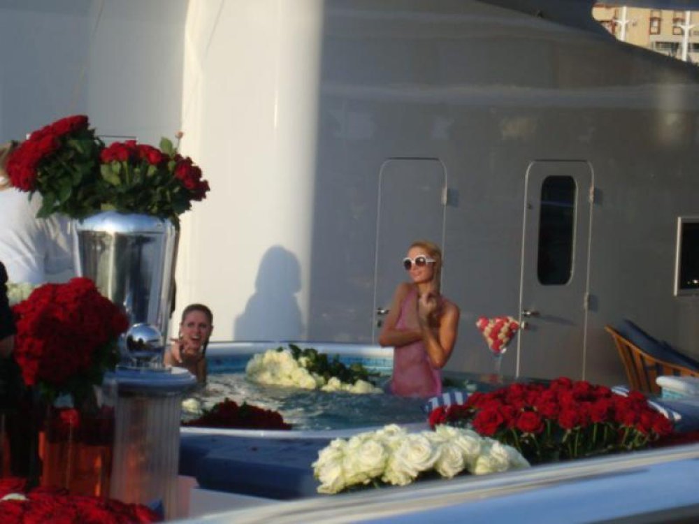 Nakon toga Paris i Nicky brčkale su se u jacuzziju na jahti, a okruživale su ih ruže kojima je kupka bila obogaćena.