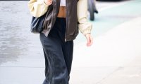 Stilizirala ju je u kombinaciji s bijelom košuljom, još jednim modnim klasikom, no umjesto da je umetnutu u suknju, ostavila ju je da visi u ležernom stilu. U skladu s nešto nižim temperatura u New Yorku, birala je jedan od svojih omiljenijih kožnih kaputa smeđe boje te visoke crne čizme na petu, koje su stajlingu pridale dodatnu notu elegancije.