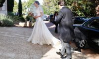 Prekrasna Lucía oduševila je divnom vjenčanicom čiji dizajn potpisuje španjolska dizajnerica Flor Fuertes. Mladenka je tako blistala u elegantnoj haljini bez naramenica prekrivenom tilom, s drapiranim detaljem u struku i bajkovitim šlepom. Ono što je posebno izdvajalo ovaj dizajn bio je ručno izrađeni vez Luneville.