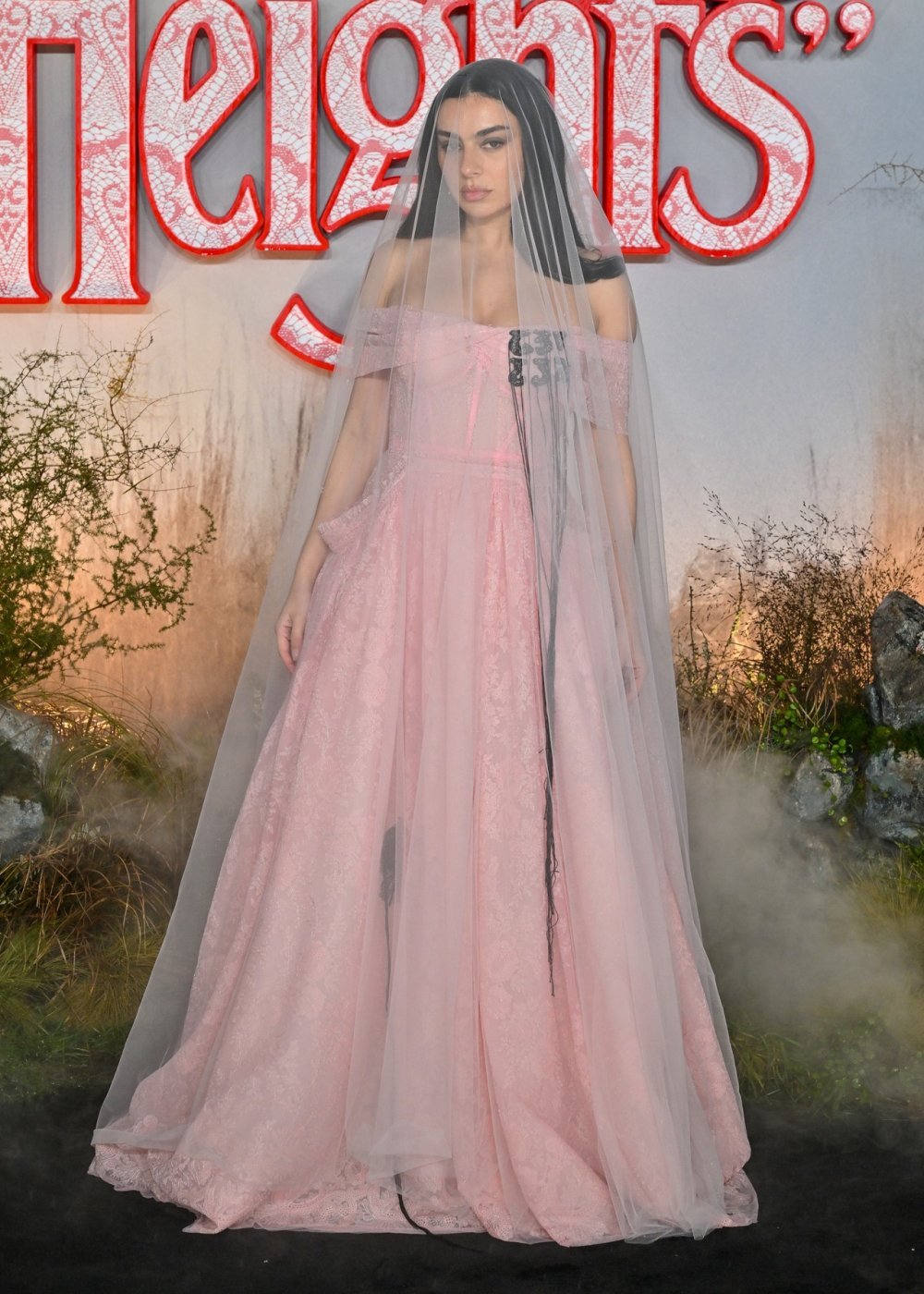 'Upoznao sam Charli prije nekoliko godina, kada je došla na jednu od mojih revija', kazao je dizajner Erdem Moralıoğlu u razgovoru za Vogue, istaknuvši: 'Uvijek me pogađalo to koliko je instinktivna i neustrašiva kao umjetnica. Za premijeru 'Orkanskih visova' želio sam da haljina djeluje kao da lebdi između nečeg romantičnog i pomalo melankoličnog, razmišljajući o sestrama Brontë. Blijeda nijansa rumenila ima u sebi istrošenu mekoću dok veo stvara osjećaj drame, kao da ona izlazi iz samog pejzaža romana. Postoji nešto duboko moderno u vezi s Charli, ali i nešto bezvremensko, a ta napetost činila se potpuno u duhu 'Orkanskih visova'.'