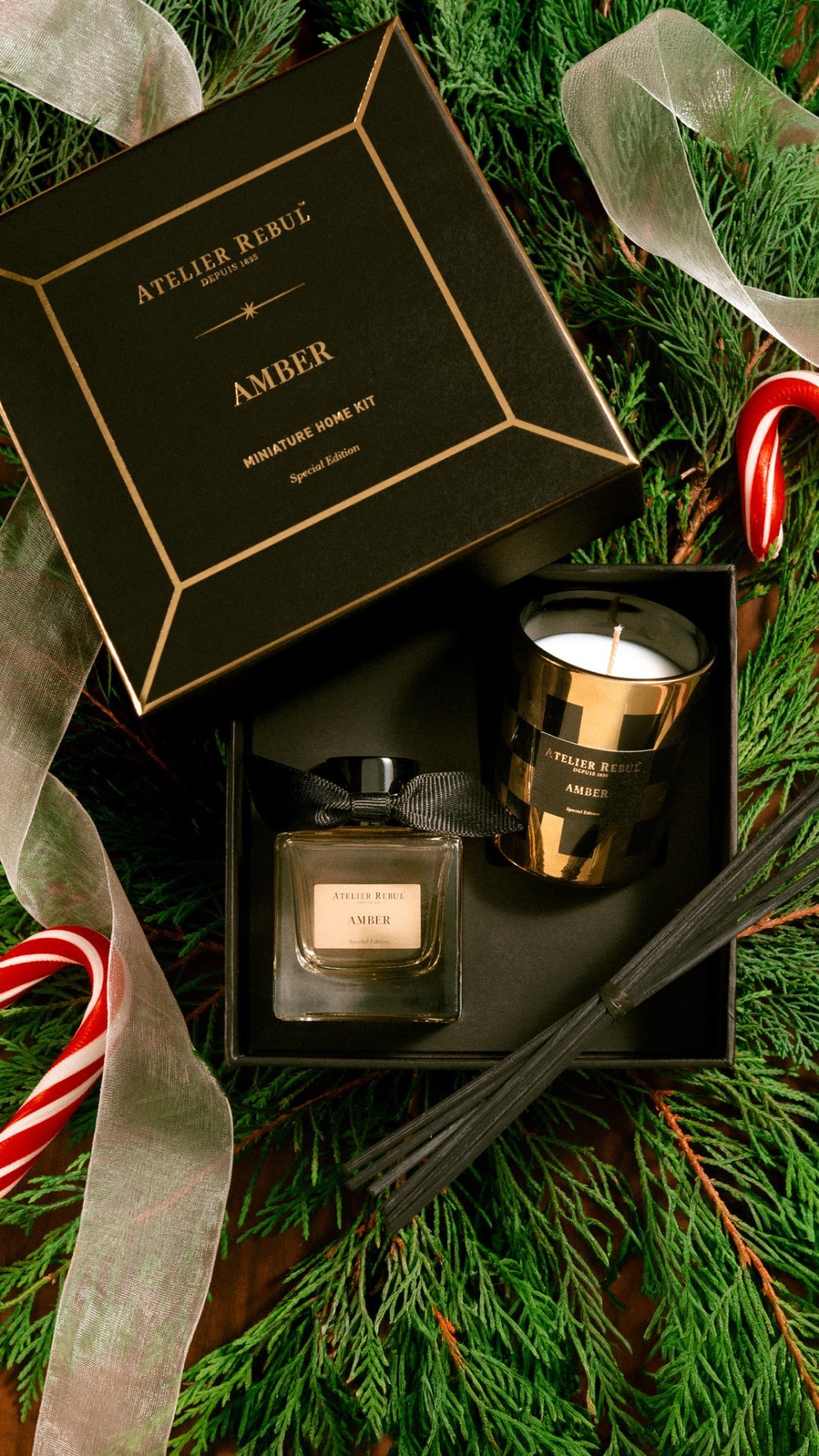 Atelier Rebul ove godine donosi blagdanske setove koji savršeno odgovaraju potrebi za toplinom i profinjenošću u domu. Posebnu pažnju privlači Amber kolekcija, dostupna u obliku svijeće i difuzora, koja prostor ispunjava bogatom i sofisticiranom aromom. Miris se otvara svježim citrusnim notama, prelazi u tople tonove muškatnog oraščića i cimeta te završava profinjenim, puderastim potpisom jantara, sandalovine, vanilije i pačulija. Amber je idealan izbor za sve koji žele stvoriti intimnu, luksuznu atmosferu tijekom blagdana.