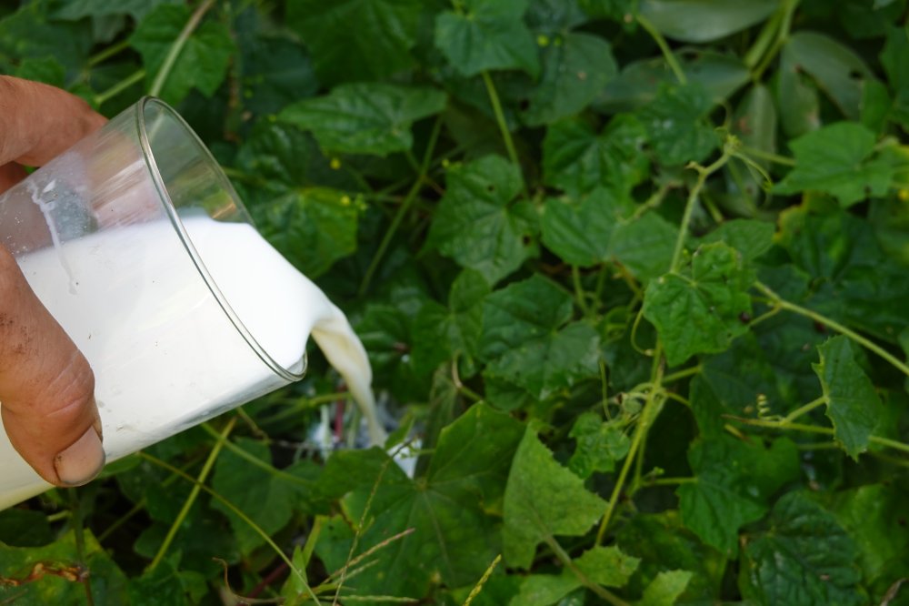 Najčešće se savjetuje razrjeđivanje mlijeka vodom (primjerice u omjeru 1:1 ili blaže), potom nanošenje prskalicom na list ili zalijevanje supstrata oko biljke. Primjenu je bolje obaviti ujutro ili predvečer, izvan jakog sunca, a višak tekućine ukloniti kako bi se izbjegle mrlje i zadržavanje vlage na lišću. Kod osjetljivijih vrsta, pogotovo rajčice, nije poželjno da otopina predugo stoji na listovima; bolje je ići na kratku aplikaciju i blago ispiranje ili odabrati zalijevanje tla.