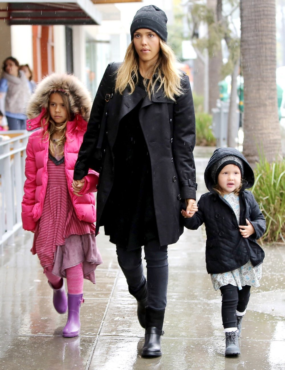 U šetnji kišovitim Los Angelesom pozornost prolaznika plijenile su 33-godišnja glumica Jessica Alba, njezina šestogodišnja kći Honor i trogodišnja Haven
