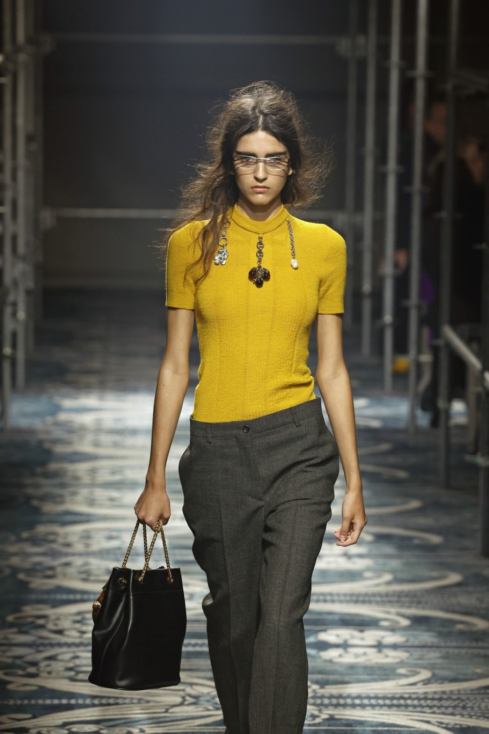 Ove sezone, ona i njezin su-dizajner Raf Simons poigrali su se konceptima ženstvenosti i ljepote na pisti, izjavivši da 'ovo nije vrijeme za dekadenciju', dok su predstavljali pletene T-shirte s lancima i biserima koji vise oko izreza – komade dostojne same gospođe Prade.