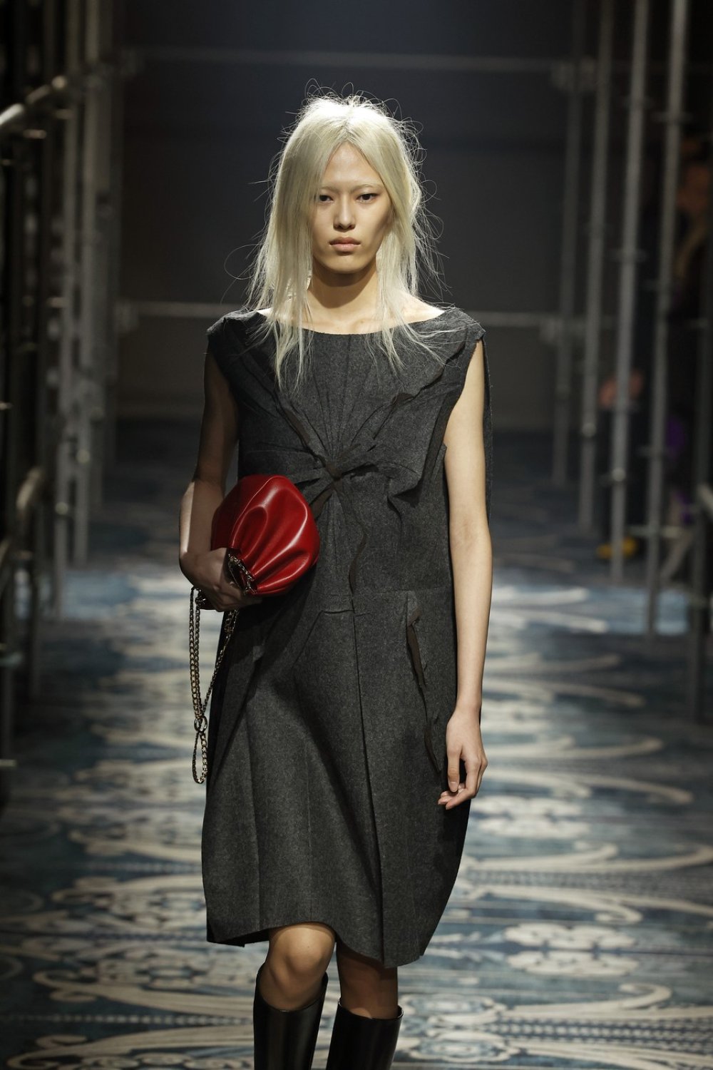 Prvi pogled na ovu haljinu javnost je dobila na modnoj pisti tijekom Tjedna mode u Milanu u veljači. S naglašenim poprsjem, strukom koji prati liniju tijela i mekšim bokovima, bila je odraz sezone Miuccie Prade i Rafa Simonsa, koja je inspiraciju pronašla u kodovima ženstvenosti 1950-ih – reinterpretiranim na samo njima svojstven način. Tamo gdje bi tradicionalno haljina prianjala uz figuru, ovdje se javlja u naglašenijem, povećanom obliku, donoseći novo viđenje najdugovječnijeg ženskog kroja.