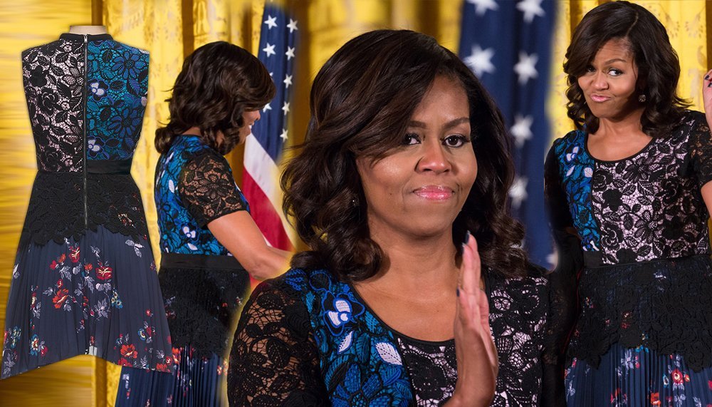 Povodom dodjele nagrada u sklopu programa National Arts and Humanities Youth u Bijeloj kući Michelle se u ulozi domaćice pojavila u kratkoj Self-Portraitovoj haljini sačinjenoj od crne čipke u gornjem dijelu s dodatkom dvobojne podstave, dok je donji dio kreacije činila tamnoplava plisirana tkanina ukrašena cvjetnim printom.