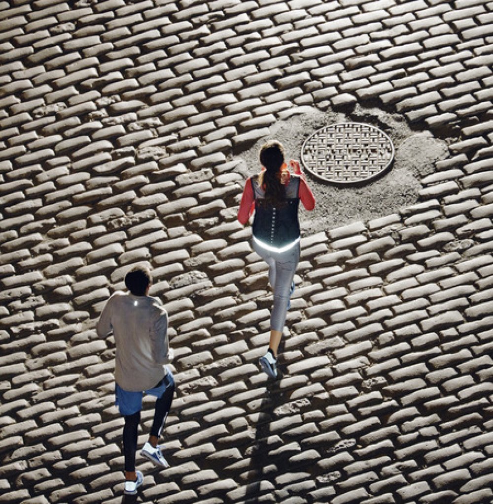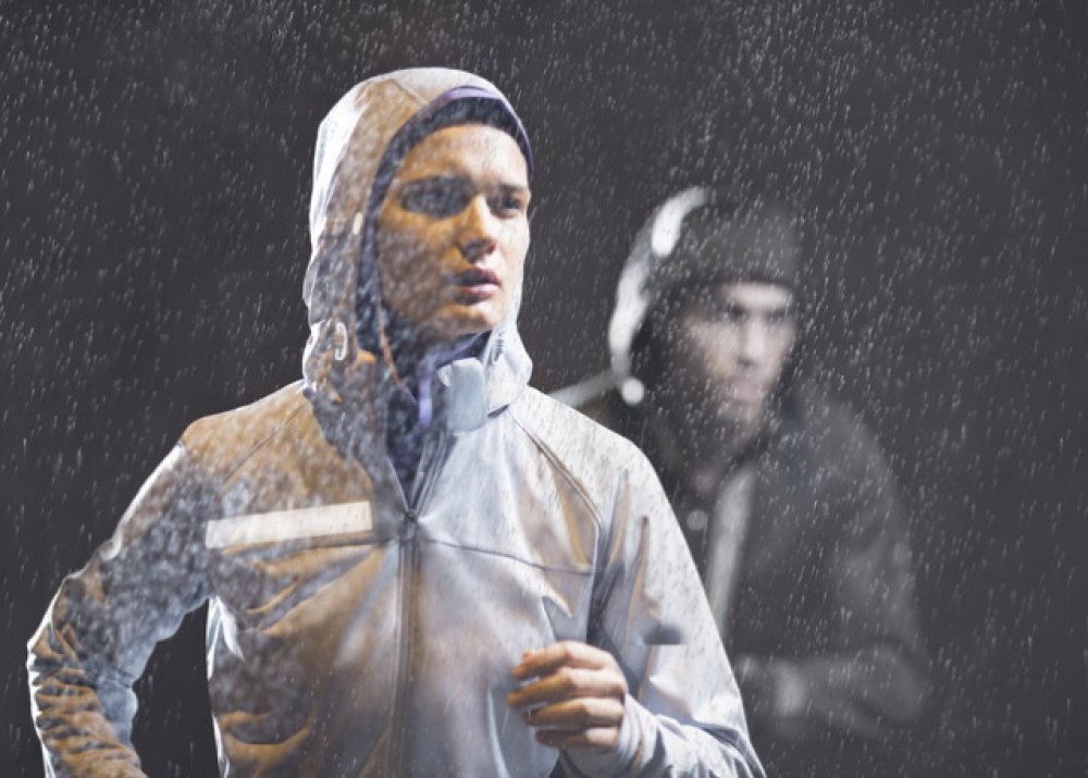Dok ona trči kroz ulice grada, reflektirajući detalji na njenoj jakni pomažu joj da ostane vidljiva. Nike Running Holiday kolekcija predstavlja elemente kao što su Nike Flash majica čiji reflektirajući elementi pružaju posebnu vidljivost dok laserski prezicno rezani prorezi poboljšavaju prozračnost i preokretanjem donose dva posebna stilska izbora