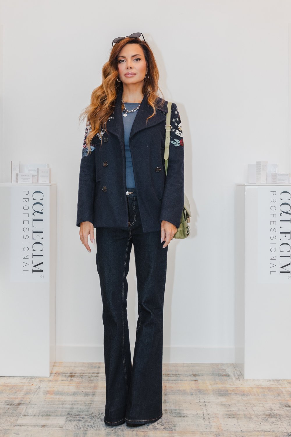 Ova beauty odluka pokazala se kao pun pogodak za voditeljicu, baš kao i njen stajling. Nosila je outfit sastavljen od efektnog sakoa modre boje obogaćen živopisnim detaljima, ispod kojeg je nosila plavu pamučnu majicu.