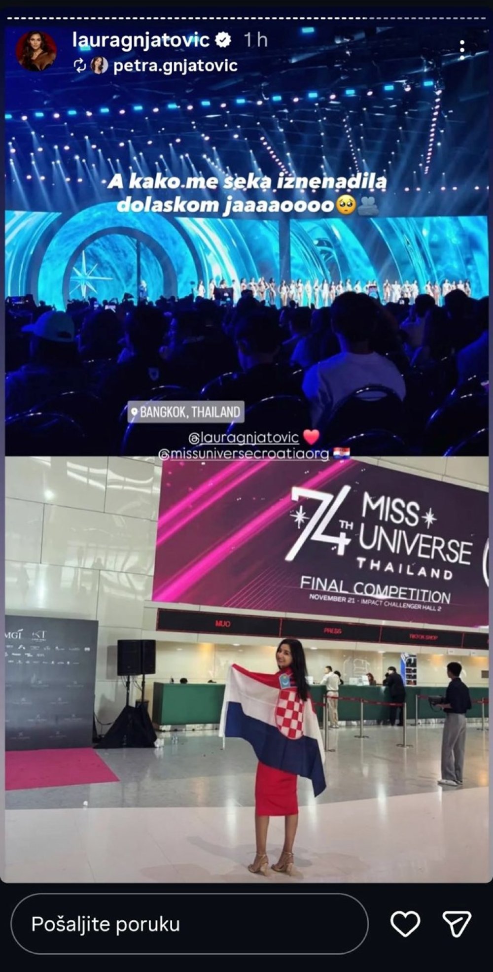 Hrvatska predstavnica Laura Gnjatović osvojila je mjesto u top 30 na finalu Miss Universea 2025, a lijepa brineta otkrila je divan trenutak kojeg će se zauvijek sjećati