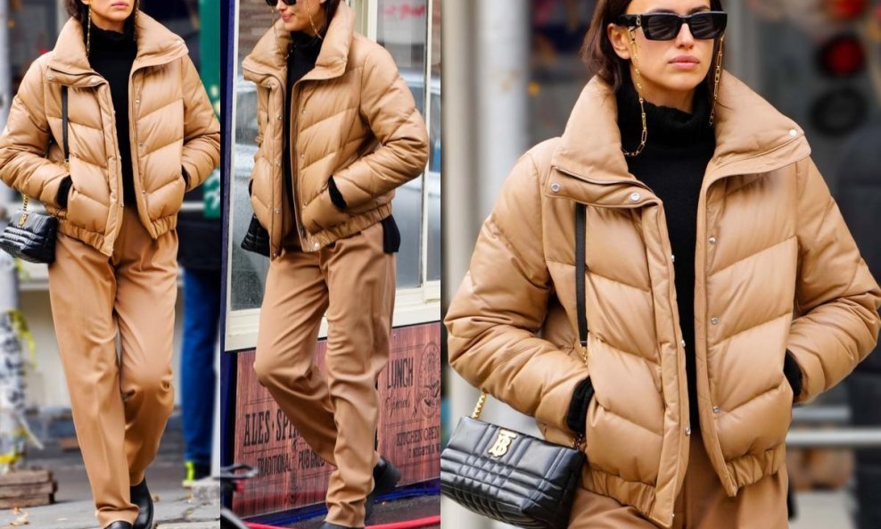 Baš poput street style zvijezdi Irina nije odoljela ideji nošenja bež boje od glave do pete istaknuvši ju trendovskim komadima poput jakne puferice i hlača opuštenog kroja.