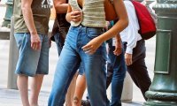 Kaia je plijenila poglede u crnom korzetu i kožnatoj minici koje je upotpunila cipelama na visoku petu i statement remenom s upečatljivom kopčom, a mnoge je njezin glamurozni stajling podsjetio na Versaceov outfit njezine mame Cindy koji je nosila 1992. godine.