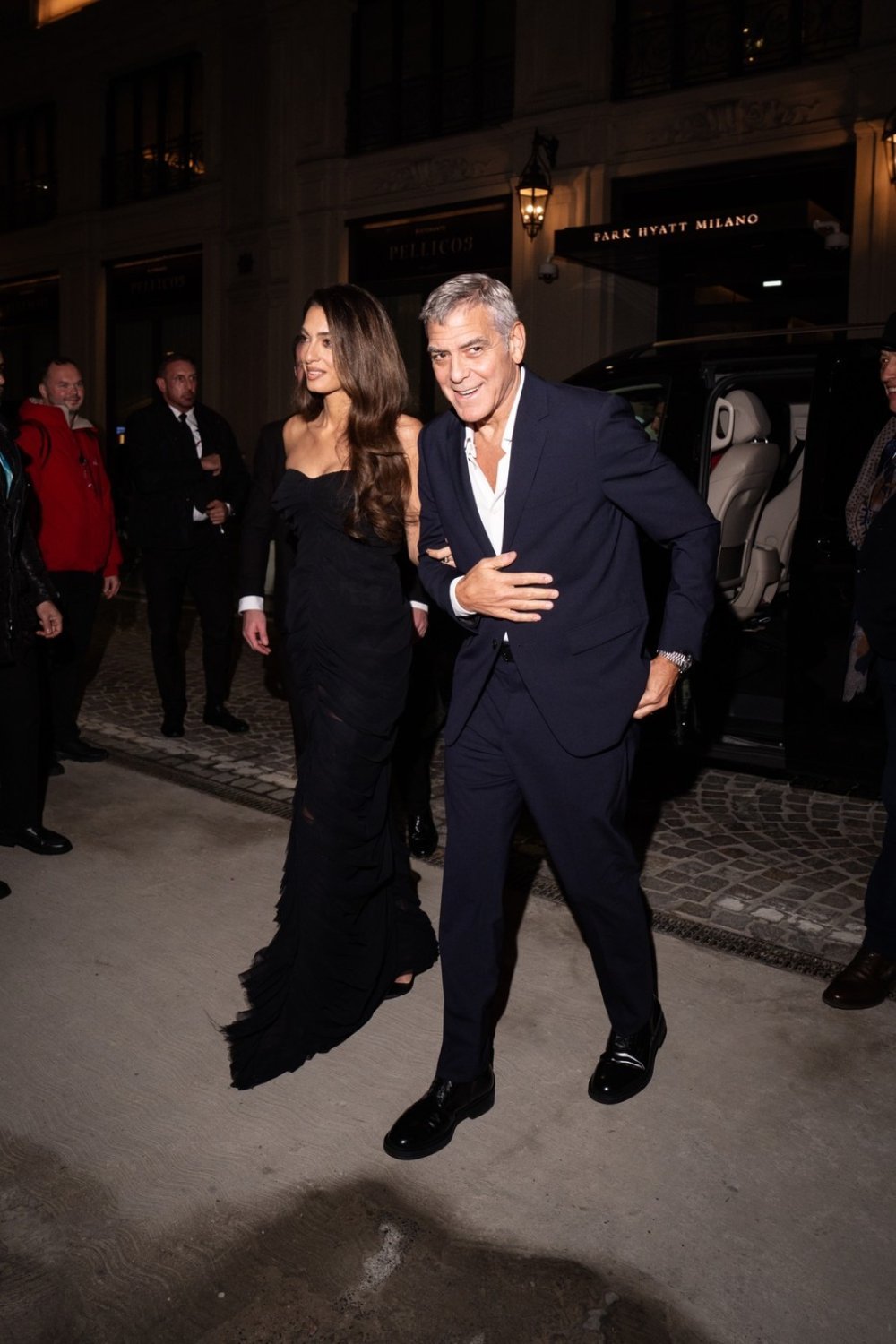Na otvorenju Omega Housea u Milanu, ekskluzivnog prostora švicarskog proizvođača satova koji je za Zimske olimpijske igre smješten u povijesnu Galleriju Vittorio Emanuele II, Amal Clooney i George Clooney stigli su u usklađenim tamnim tonovima.