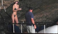 28-godišnjakinja je pokazala svoj prepoznatljiv minimalistički osobni stil čak i na plaži, odlučivši se za crno-bijelu prugastu haljinu australskog brenda DISSH. A haljina, s cijenom od 220 dolara, u kratkom roku je postala viralni hit te je rasprodana. Maksi haljina bila je bez rukava i poluprozirna, otkrivajući maleni crni bikini koji je nosila ispod.