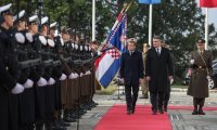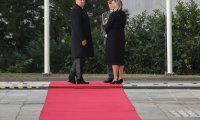 Na radnom ručku Macronu su ponuđene terina od prepelice, sa pečenom rajčicom i torticom od poriluka, kremasti rižoto sa tartufima te listićima paškog sira.
