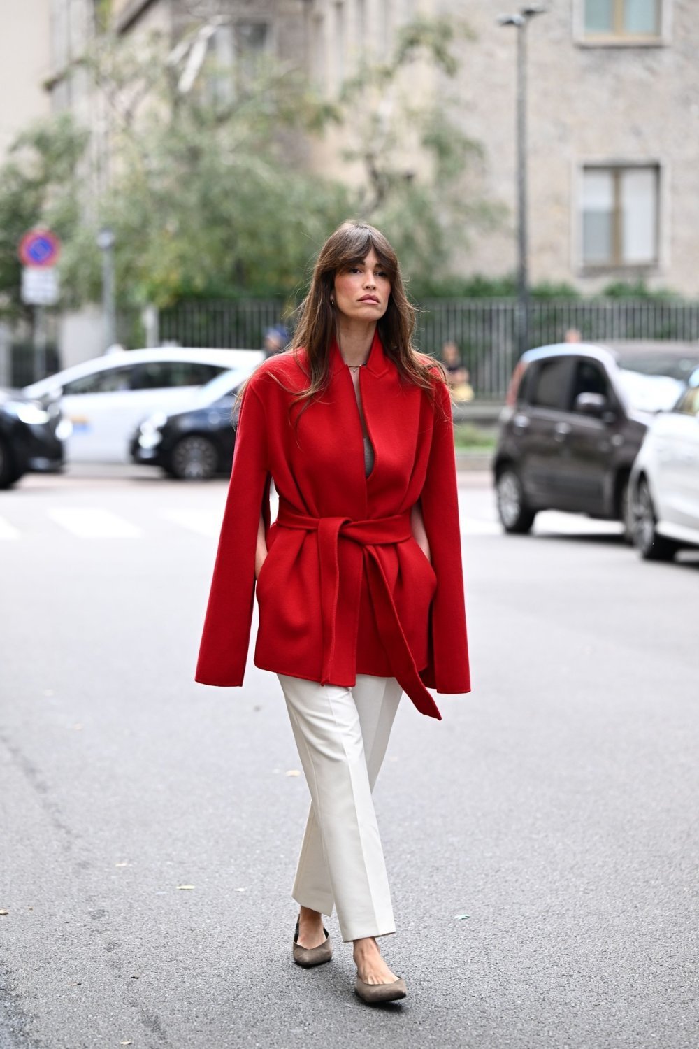 Frizura odiše slobodnim, boho duhom sedamdesetih, s mekim slojevima koji uokviruju lice i ublažavaju crte. Ključni detalj su duge šiške koje gotovo dodiruju kapke. One vizualno povećavaju oči, diskretno prikrivaju podočnjake i sitne bore te licu daju nježniji, mlađi izgled.