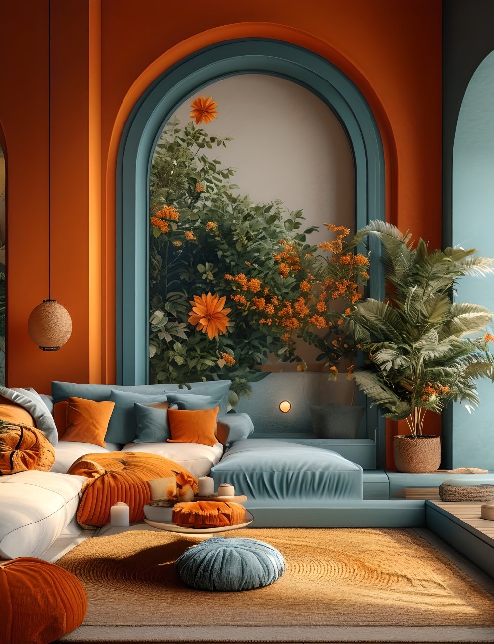 U interijeru plava obično djeluje smirujuće i daje prostoru osjećaj dubine dok narančasta donosi toplinu i energiju. Upravo ta napetost između hladne i tople nijanse stvara dinamičan, ali uravnotežen izgled prostora.