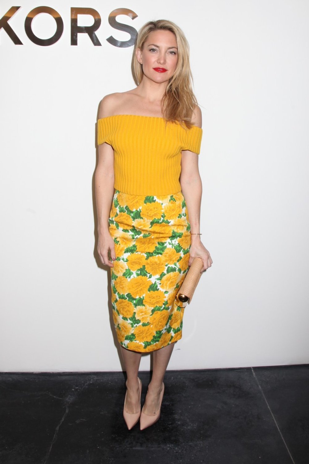 Kate je puno puta dokazala da odlično nosi vedre boje koje su u skladu s njezinom veselom osobnosti, a u ovoj kombinaciji žutog topa i suknje s krupnim cvjetovima (Michael Kors) bila je itekako zapažena među slavnim uzvanicama kojih nije nedostajalo na ovom modnom događanju.