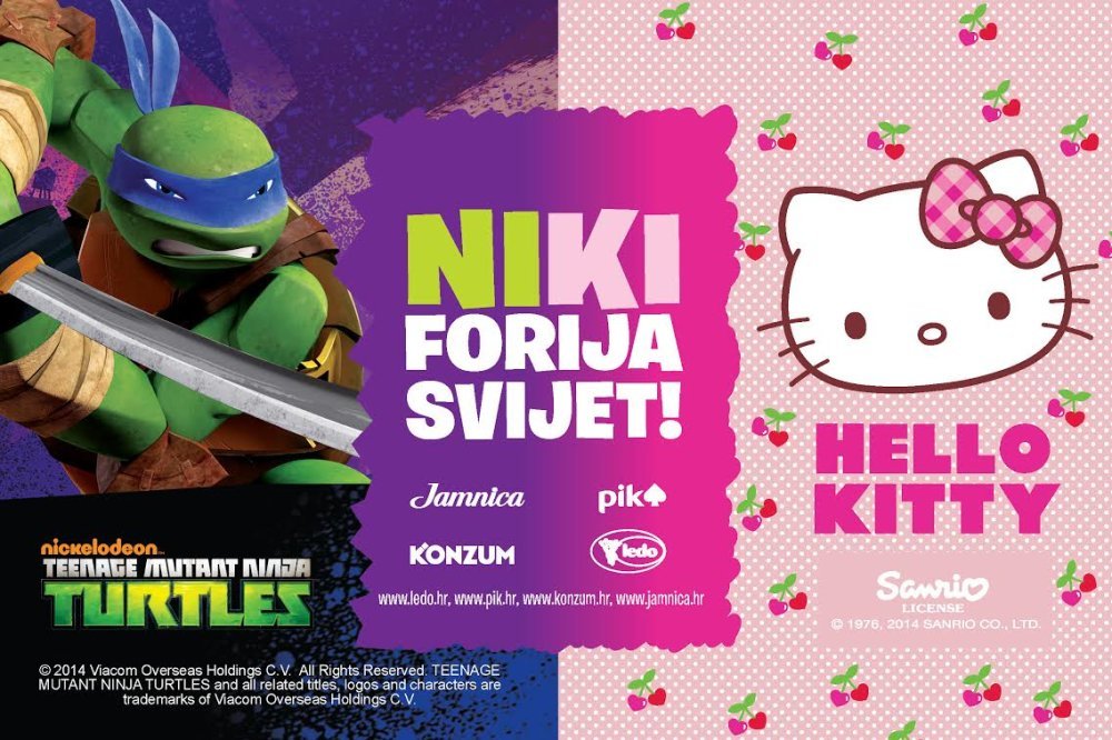 Zahvaljujući velikom projektu Konzuma, Leda, PIK-a i Jamnice, ovaj vikend započinje senzacionalna NIKIforija svijet turneja koja će okupiti i zabaviti sve fanove hrabrih Ninja kornjača i simpatične Hello Kitty na jednom mjestu. Prva stanica bit će grad Zagreb, točnije Avenue mall (prizemlje, kod glavnog ulaza) u subotu 13.9. od 16.00 do 20.00 sati.