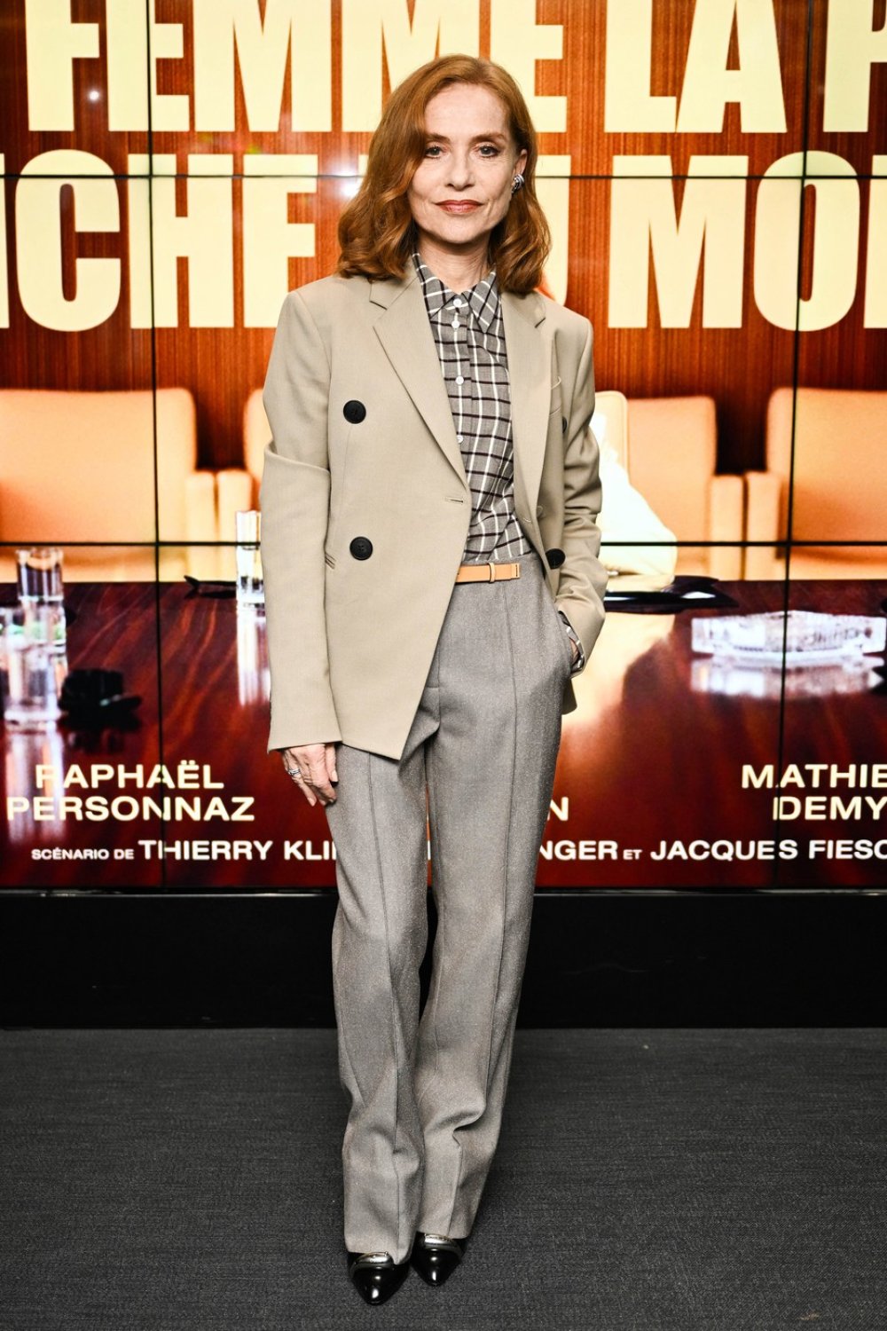 Čuvena francuska glumica i zaštitno lice modne kuće Balenciaga na premijeri filma 'La Femme La Plus Riche Du Monde' u Parizu nosila je klasično krojeni bež sako s kariranom košuljom i elegantne sive hlače - kombinaciju koja se odlikuje nenametljivom elegancijom i poslovnim tonom.