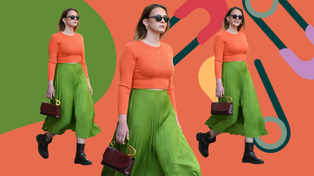 Dok su mnogi igrali na sigurno s neutralnim tonovima, ova dama na zagrebačkoj špici posegnula je za energičnim kontrastima. Spoj jarke narančaste i svježe zelene pokazao se kao pun pogodak, a cijeli je outfit zaokružen detaljima koji ga podižu na višu razinu.