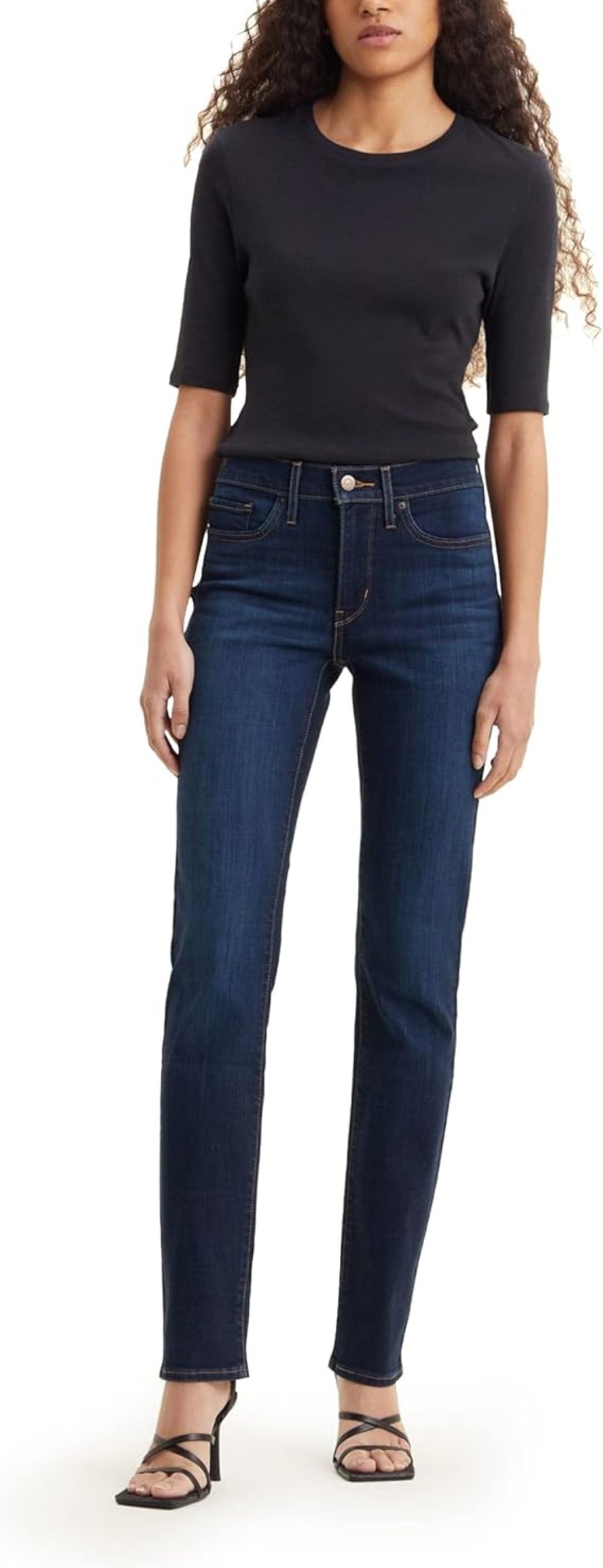 Jedan od najtraženijih modela u toj nijansi su Levi’s 724 High Rise Straight traperice. Dolaze u bogatoj, gotovo tinta modroj boji, bez vidljivog izbjeljivanja ili oštećenja, što im daje profinjenu notu tihog luksuza.